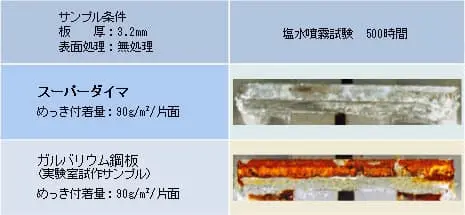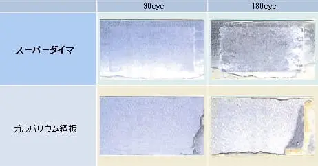 スーパーダイマ®とガルバリウム鋼板の平面部の耐食性(JASO結果)
