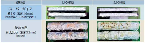 - スーパーダイマ®K18は、後めっきHDZ55より優れた曲げ加工部耐食性を有しています。