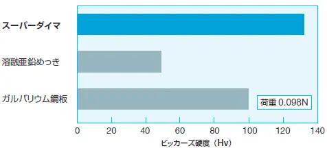 - スーパーダイマのめっき層は硬度が高く、優れた耐疵付き性を有しています。