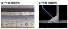 このような溶接にスーパーダイマ®のようなめっき鋼板が使用されると、ビード部周辺の母材が割れること※がありますので、事前確認の上ご使用いただくようお願いいたします。(弊社にて溶接条件等のご相談に応じます)