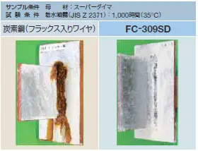 スーパーダイマ®専用溶接材料FC-309SDは、このような問題を解決したもので、スーパーダイマ®の溶接に適したステンレス系の溶接ワイヤ(フラックス入り)です。溶接部がステンレス系の成分となるため耐食性が高く、補修塗装なしで母材と同等の耐食性を有すると共に、良好な溶接継手性能が得られます。