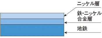 Niめっきの後の加熱処理によりFe-Ni合金層を形成させることで、特に加工後耐食性に優れています。