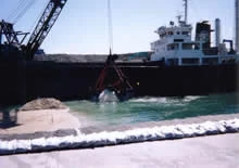 神奈川・久里浜地区の岸壁工事の際に、裏込め材として高炉水砕スラグが使用されています。