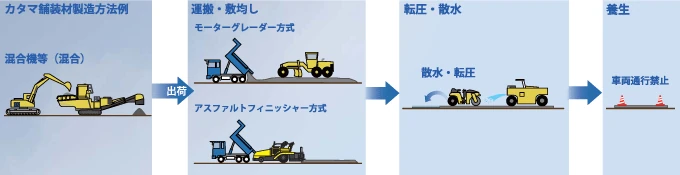 - ※カタマ舗装材の製造方法は、各製造所毎に若干の違いがあります。詳細につきましては、ご購入先に御問合せ下さい。