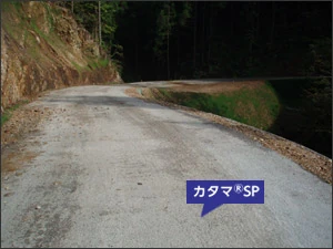 固化により通常砕石より強度、耐久性が向上するため、除草費用および林道、農道等の維持管理費の軽減が可能です。