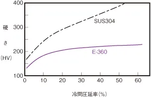 - オーステナイト組織が安定で、軟質かつ加工硬化が少なく、加工性に優れています。