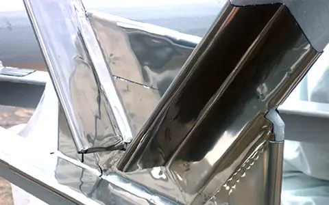 チタン箔工法は厚さ0.1mmの薄いチタン箔を使用するため、施工性に優れています。これは全面被覆のみならず、発錆した箇所への部分補修にも適用可能です。