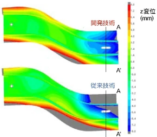 高強度鋼板のスプリングバック現象予測や対策検討が可能 →金型工期短縮・コスト削減