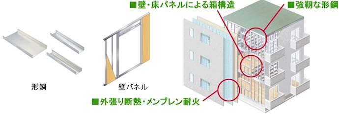 スチールハウス:厚さ1.0mm前後の薄鋼板による構造