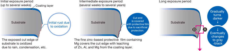 Note: The color and the speed of change in color depend on sheet thicknesses and exposure environments (region, installation location, aspect, etc.).