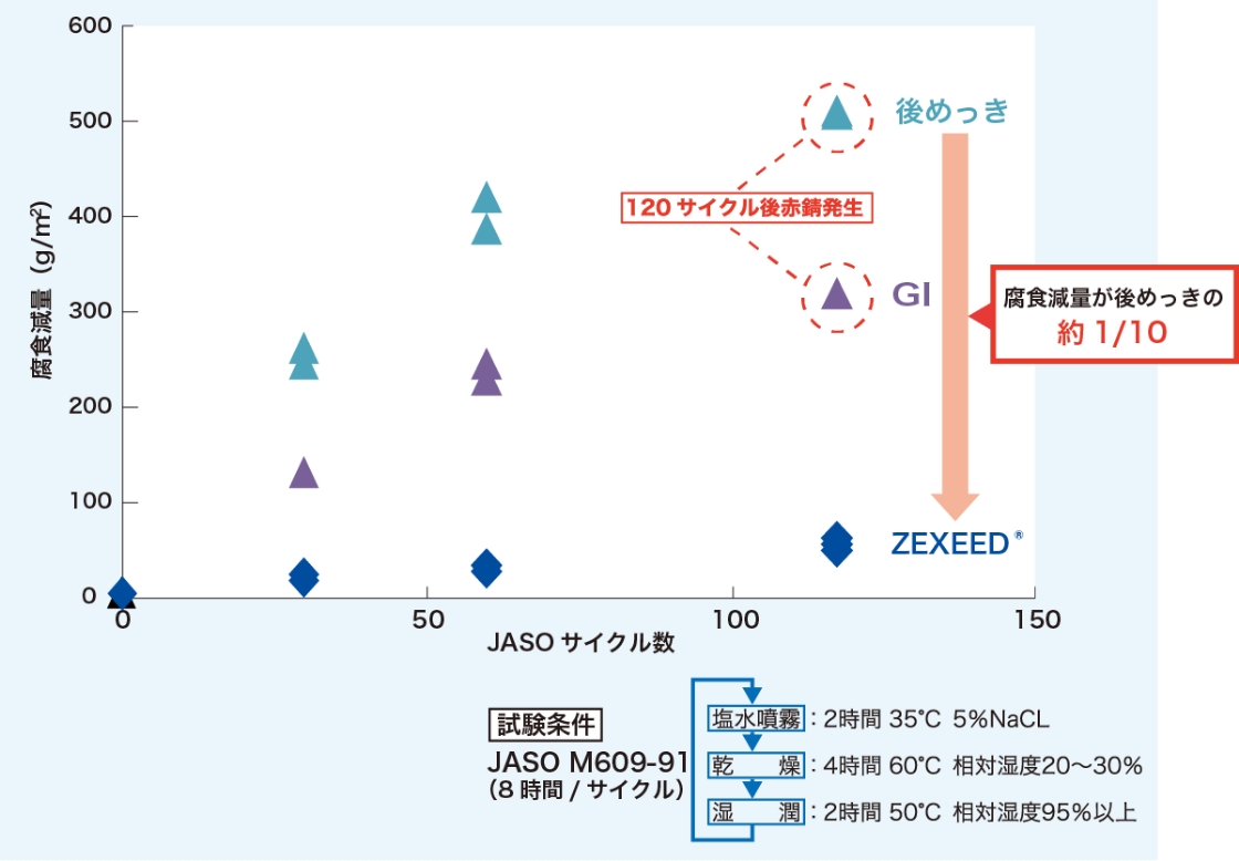 (腐食促進試験JASO-CCT 120サイクルで比較)