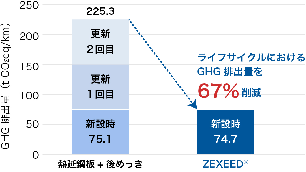 ■ ガードレールへのZEXEED®適用によるGHG排出量削減効果(当社試算)
