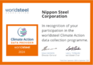 当社は、世界共通の手法で製鉄所のCO2排出量を計算・報告する世界鉄鋼協会のCLIMATE ACTIONのメンバー(データ提供者)として、18年にわたる貢献が認められています。