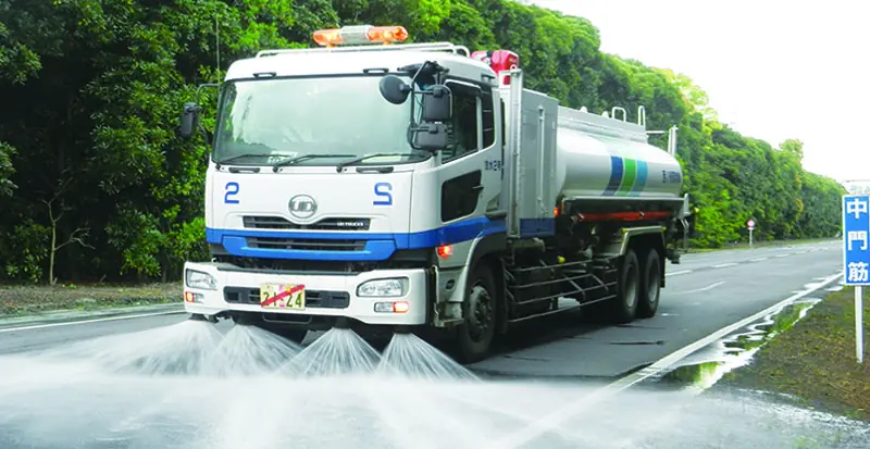構内の道路・空地への散水や構内道路の清掃を実施し、粉じんの二次飛散を抑制します。