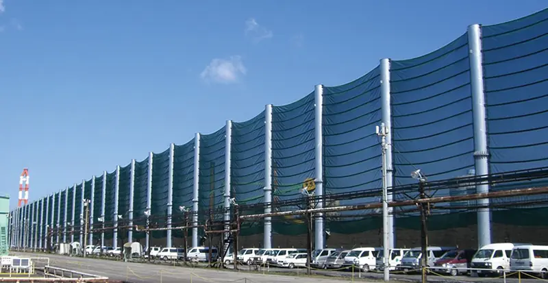 工場や原料ヤード等から発生するばいじんや粉じんに対しては、科学的シミュレーションを用いた大気環境のリスク分析を踏まえ、集じん装置を設置して捕集したり、防風ネット・防風林や散水設備を設置して飛散を防止したりしています。同時に、監視カメラや定期的なパトロールによって、環境対策に変化がないように監視しています。