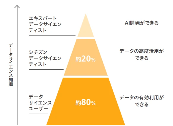 データサイエンスとデジタルマネジメントとの両輪で人材育成を進めています。データサイエンス教育ではDXスキル研修を整備し、2030年までに全スタッフ系社員を「データを有効活用できる」データサイエンスユーザーに育成するとともに、「データを高度活用できる」シチズンデータサイエンティストをスタッフ系社員の2割以上育成することを目標としています。