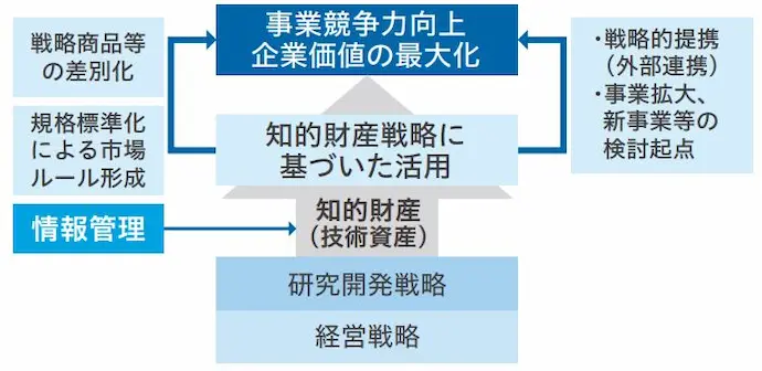 当社の知的財産を質・量の両面で拡充・蓄積して事業活動のあらゆる局面で活用できるように強化しています。具体的には、 当社単独での研究や大学・外部研究機関との連携を通じた研究に係る技術情報を徹底管理した上で、 事業活動に活用可能な知的財産の確保・蓄積を図っています。