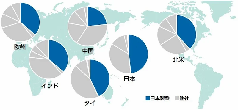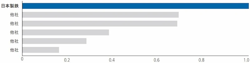 日本製鉄グループの保有特許件数のシェアは、国内外の競合他社と比較して世界主要市場において高い順位を占めています。