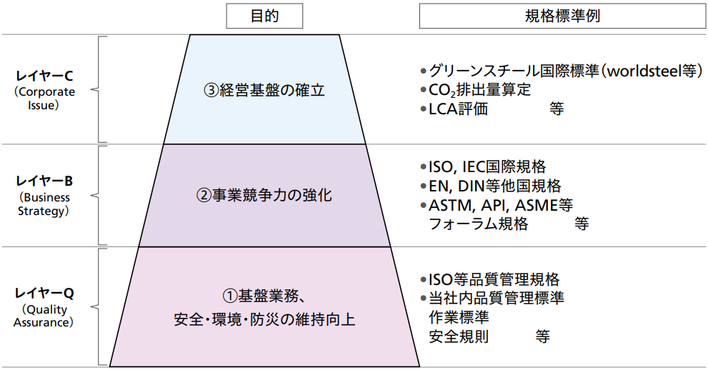 広範な対象・アプローチの広がりを持つ標準化活用を組織的に推進するため、当社は目的を複数に峻別して推進しています。