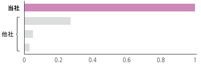 LexisNexis社「PatentSight®」は、特許が有する技術価値と市場価値に基づく特許価値評価PAI (Patent Asset Index™)を提供しています。当社の2024年における特許価値PAIは、国内外の競合他社よりも高い価値を示しています。経営戦略に応じて、世界・地域における事業収益の向上や社会・経済・産業の発展に貢献するべく、国内および外国特許出願の厳選を行うとともに、重要度の高い特許を質と量の両方の観点から拡充・蓄積することで価値の高い特許資産を増やしています。