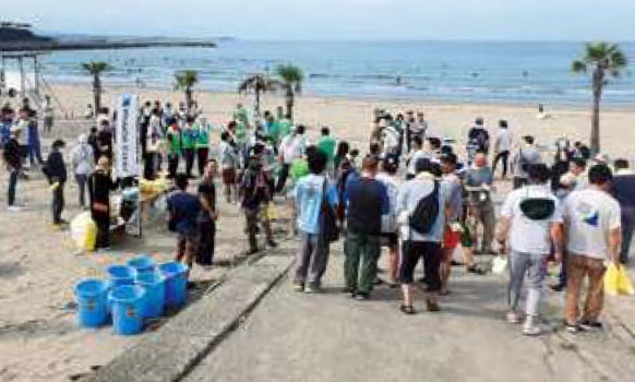 各製鉄所の近隣では各種の清掃活動に取り組んでいます。関西製鉄所和歌山地区に隣接する磯ノ浦海水浴場では、2023年6月24日に清掃活動を行いました。コロナ禍の影響で4年ぶりの実施となりましたが、製鉄所関係者とその家族に加え、居合わせたサーファーの皆さんとともに、総勢約180名で海開き前の海水浴場の清掃を行いました。