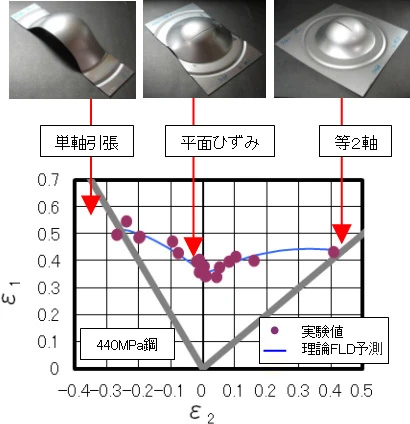 - 各種鋼材について板厚・引張特性値のみからFLDを高精度に予測