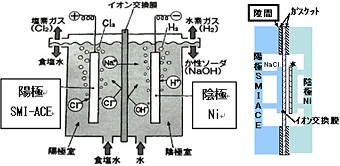 純チタンは、塩化物環境において優れた耐食性を示しますが、高温高濃度塩化物環境下で隙間腐食を起こすことがあります。このような場合、Pdを0.12~0.25%含むTi-Pd合金(JIS11~13種やASTM Gr.7等)の適用が推奨されますが、非常に高価となります。これに対し、ほぼ同等の耐食性を有しながら、Pd量の少ない経済型の材料SMI-ACE(Ti-0.05Pd-0.3Co等)が開発されれています。本材料は、JIS 17やASTM Gr.17としても登録され、苛性ソーダプラントを始め、耐隙間腐食性が特に要求されるいろいろな分野で使われています。