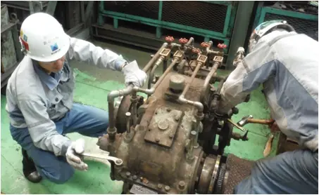 製鉄所では、鉄を造るために様々な設備が備わっています。その中で私は主に機械の補修、保全業務を行っています。わかりやすく言うと、機械のお医者さんです。悪くなった機械を直したり、悪くなる前に予防を行ない、製鉄所の安定稼働・安定生産を支えています。 製鉄所は一つ一つの設備がちゃんと動かなければ機能しません。私たちの職場はとても重要な職場の一つです。