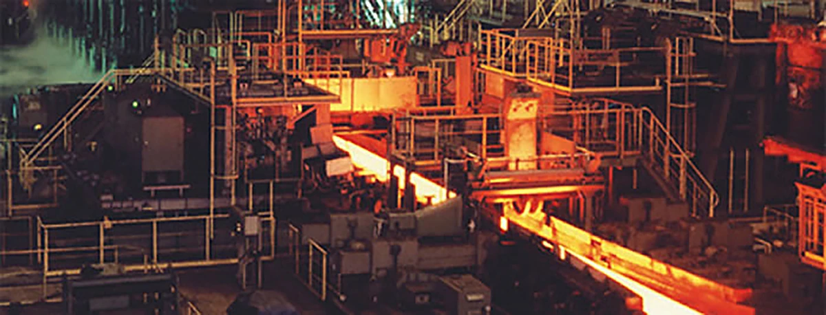 熱延工場 真っ赤な鉄の塊(鋼片)を薄く延ばす工場