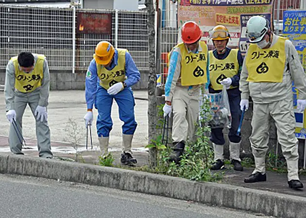 - 9月24日、当所社員の有志30人が東海町2、3丁目を、東海市役所職員の有志25人が大田町、中央町2丁目を清掃。また27日、当所協力会(名協会)の有志21人が東海町6、7丁目を清掃しました。東海市は知多半島の玄関口であり、清掃を通して「ポイ捨ての出来にくい環境づくり」の一翼を担いました。