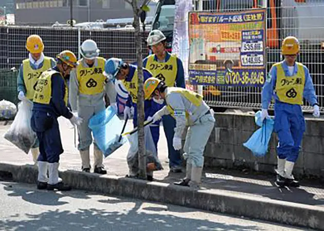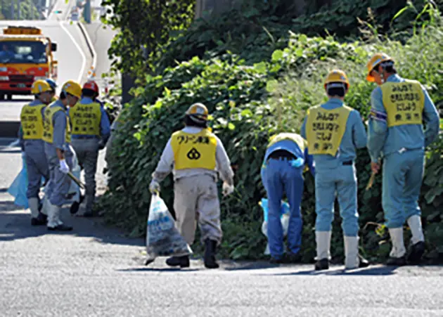 - 5日には名古屋製鉄所協力会(名協会)の有志60人が、荒尾インターチチェンジ周辺を清掃しました。