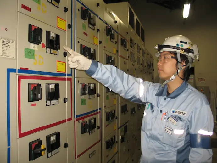 ブリキ工場の電気設備の保全と整備を行なっています。電気整備は設備の維持・管理のため日夜、点検や補修、改善業務を行っています。