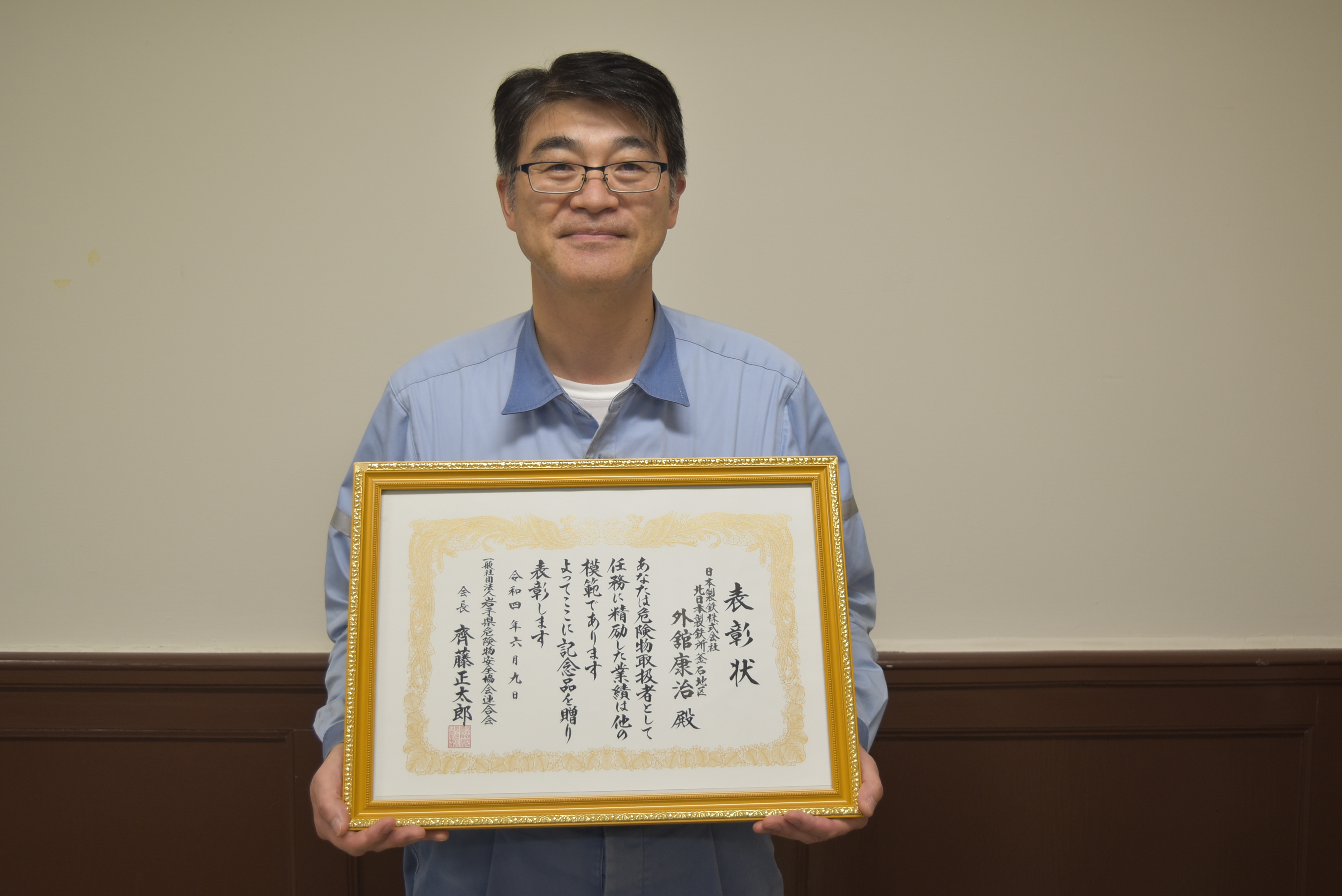 外舘康治主査(釜石安全環境防災室)が「令和4年度岩手県危険物安全推進大会」において優良取扱表彰を受賞し、6月9日にホテルメトロポリタン盛岡で表彰式が行われました。