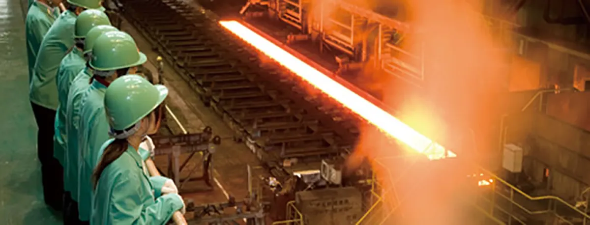 鋼の塊(鋼片)を加熱して、薄く延ばしていく工程をご覧いただけます。