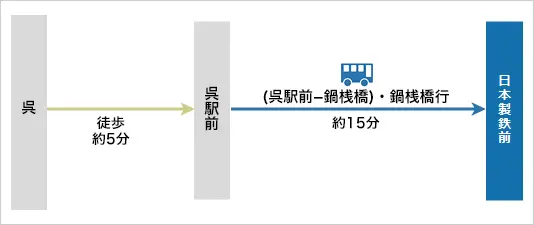 JR呉線「呉駅」より広電バス(3番乗り場から発車するバス)に乗車「日本製鉄前」下車。